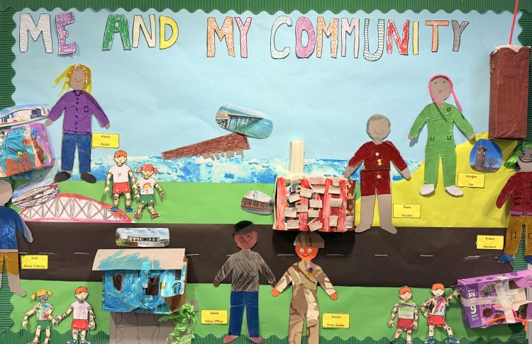 This beautiful display has been created by the children in our Discovery class - and what a brilliant pice of work it is! This terrific topic lets our children really 'dig deep' into the places, people and history of Ramsey; look closely and you can see some of the wonderful landmarks of our great town, as well as some of the community members who are here to helps us. Outstanding work, Discovery class, very well done!